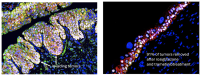 Tumors in a section of untreated muscle invasive bladder cancer (left) vs. section treated with Rosiglitazone and Trametinib showing 91% fewer tumors (right).